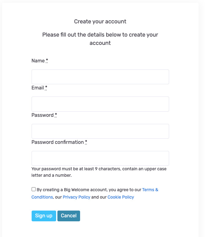 - The Big Welcome support team may access your profile if you need help or something's not working.